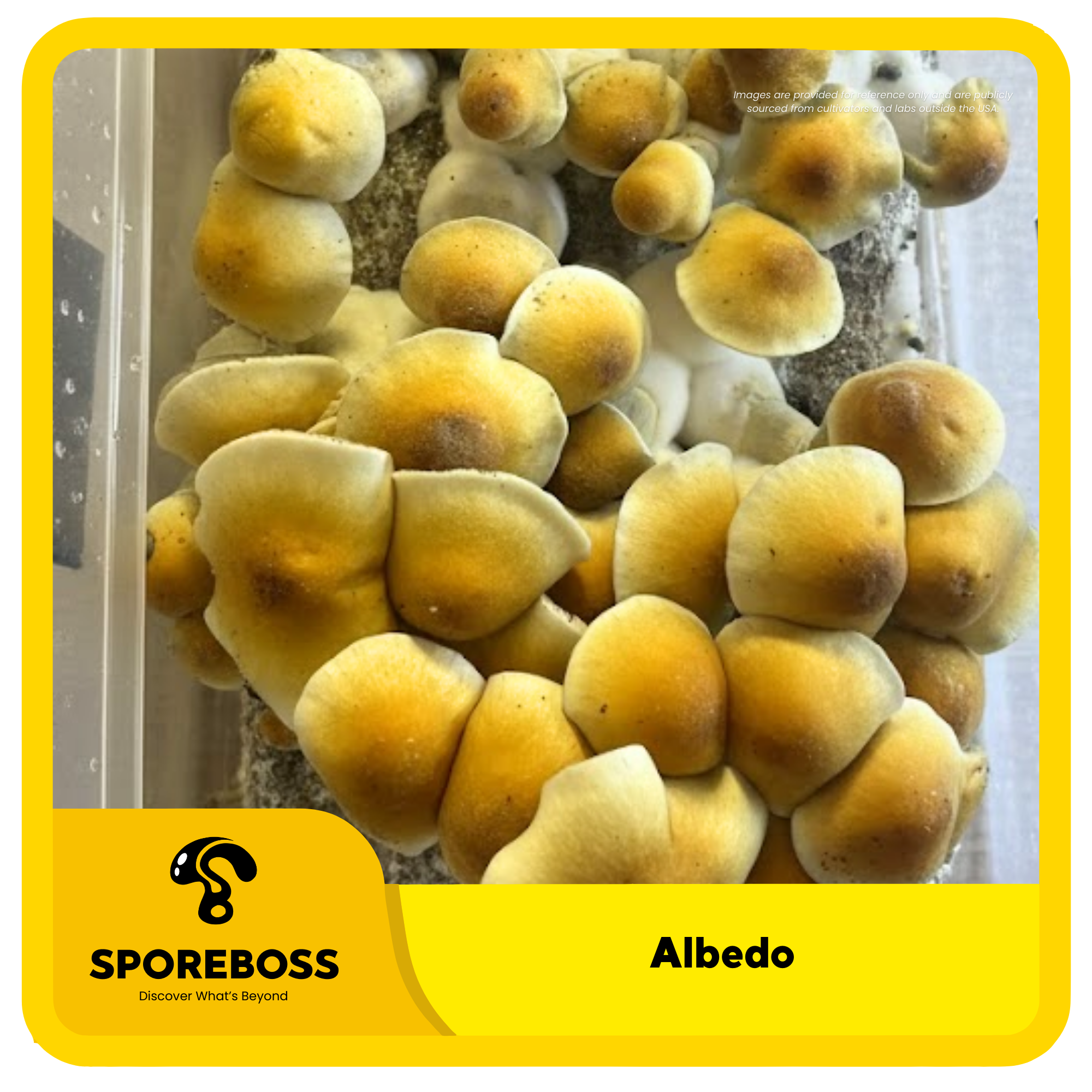 Being in the Tidal Wave lineage, they are very potent. Albedo is named for the shiny gold top on the caps when dried.