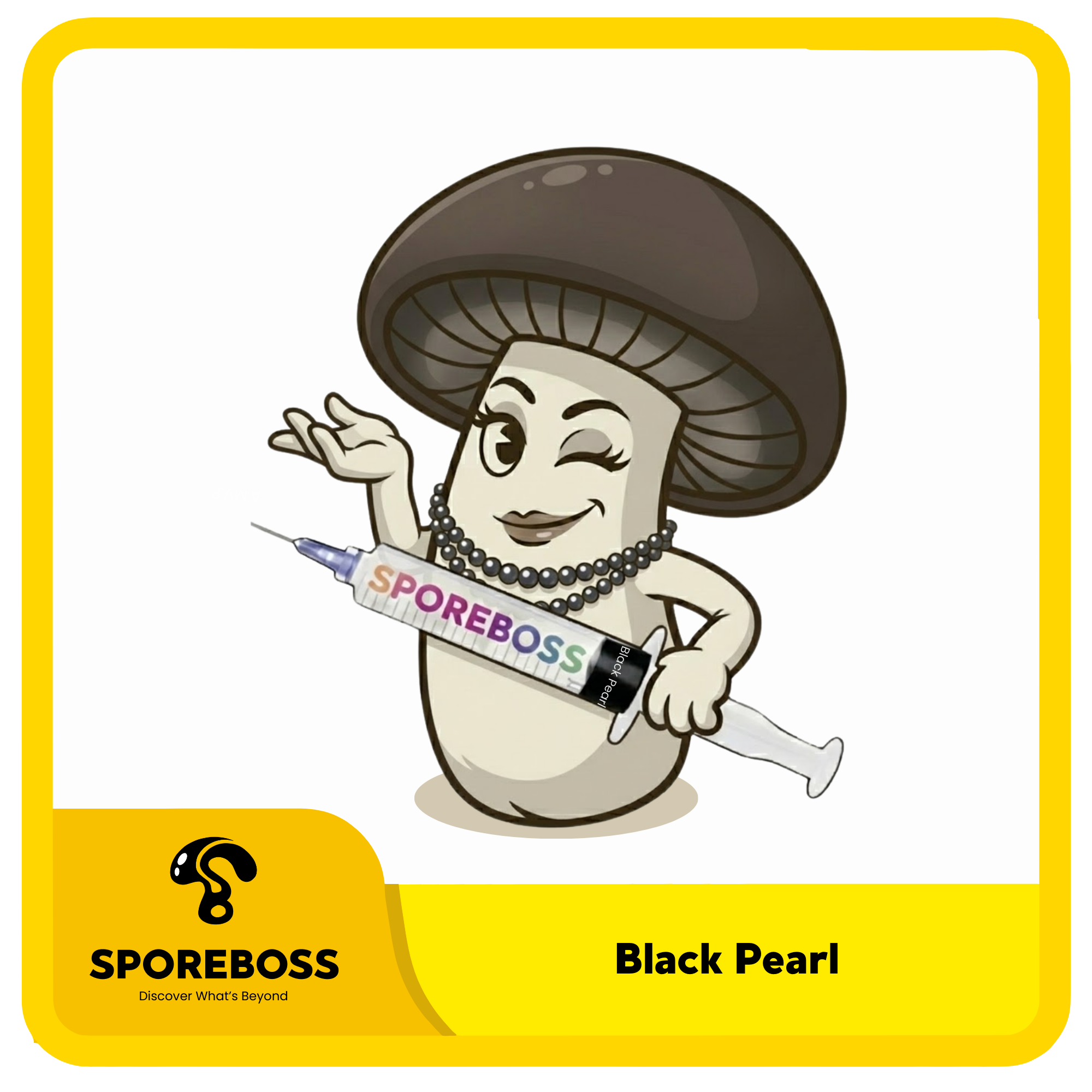 Black Pearl is a dark-toned cubensis strain known for developing deep gray to near-black shading as bruising sets in. It is believed to descend from Penis Envy-style genetics, selected for dramatic coloration and dense growth.