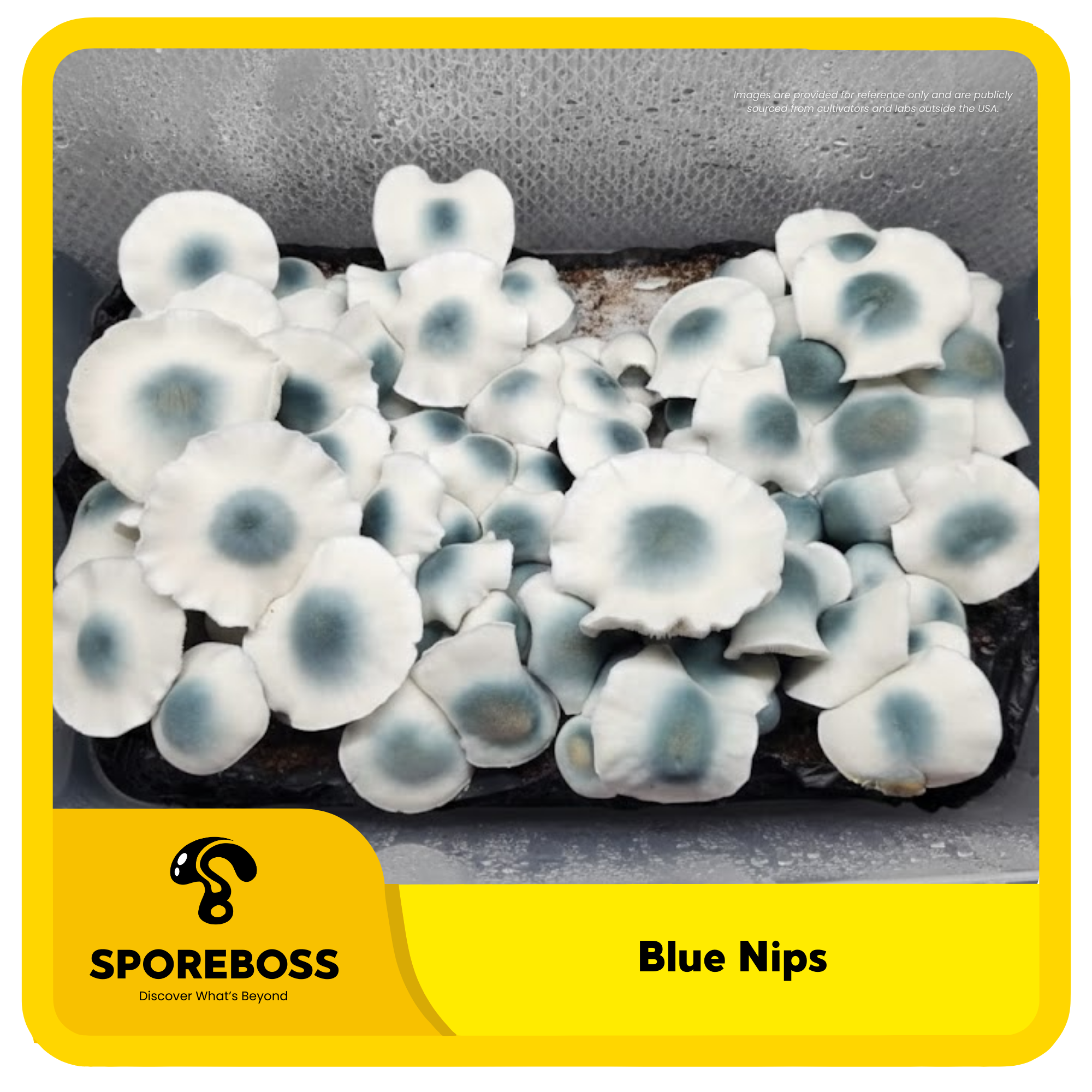 Like Shakti, Blue nips are albino, meaning they drop no spores and they lack pigmentation. Blue Nips are characterized by pure white color, thick large stems, and rigid blue tipped caps. They have an above average potency.