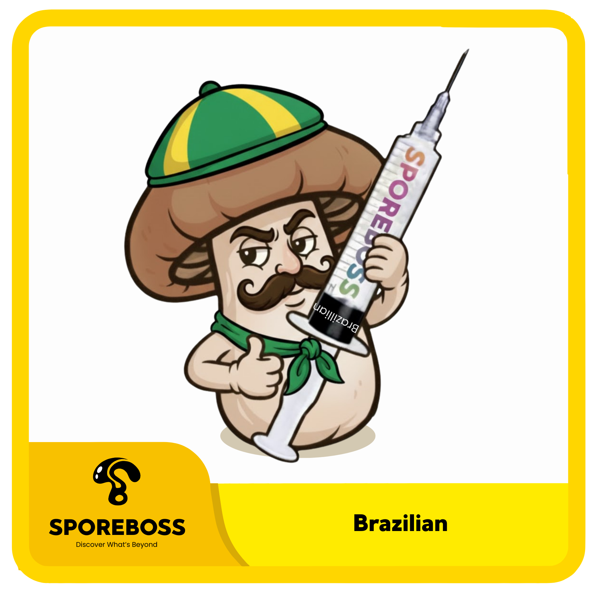 Brazilian cubensis is a landrace cubensis which grows very large. Specifically large brown caps. They grow well in a humid environment. The potency is slightly above average. These are a good beginner variety because they grow vigorously and are contamination resistant.