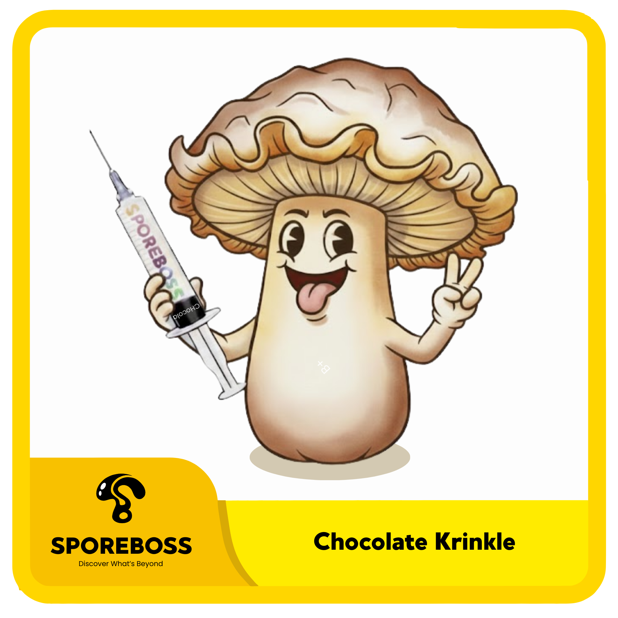 Chocolate Krinkle cubensis is Dave Wombat’s cross of two of his isolations, El Choco (an isolation of B+) and Mr. Krinkle (an isolation of Dave’s “Golden Creature”). Chocolate Krinkle is another one of Dave’s wild, constantly mutating genetics.