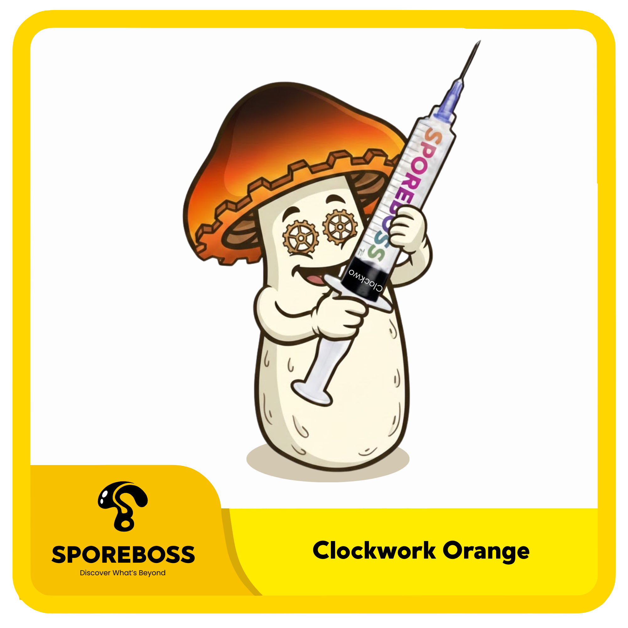 Clockwork Orange is one of Dave Wombat’s isolations of True Albino Teacher. It is named for it’s orange caps with cap edges that look like a clock gear. The stipes are long and thick, and very white in color, since Clockwork Orange is a reverted albino.