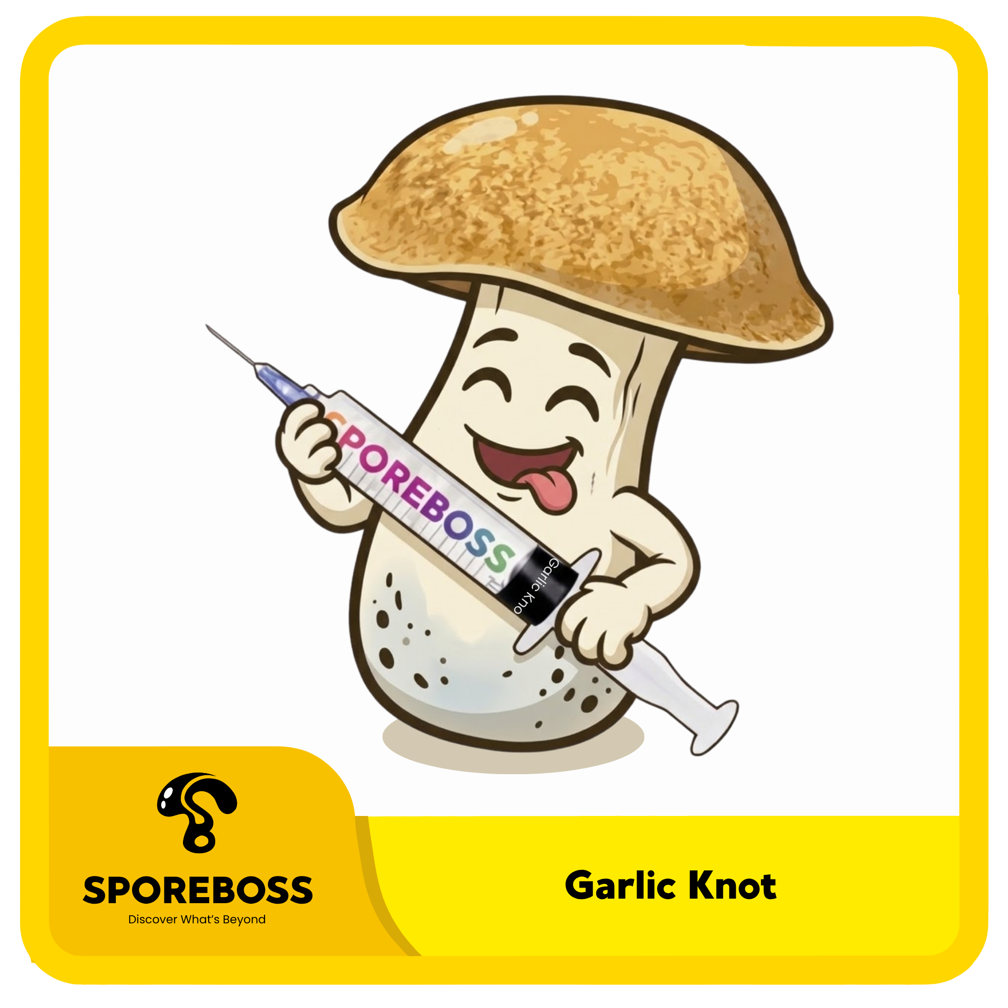 It produces squat, dense fruiting bodies in beige to cinnamon tones with thick stems that may show blue bruising. Appreciated for its strong structure and consistent flushes, Garlic Knot stands out for its compact build and unique cap shape.