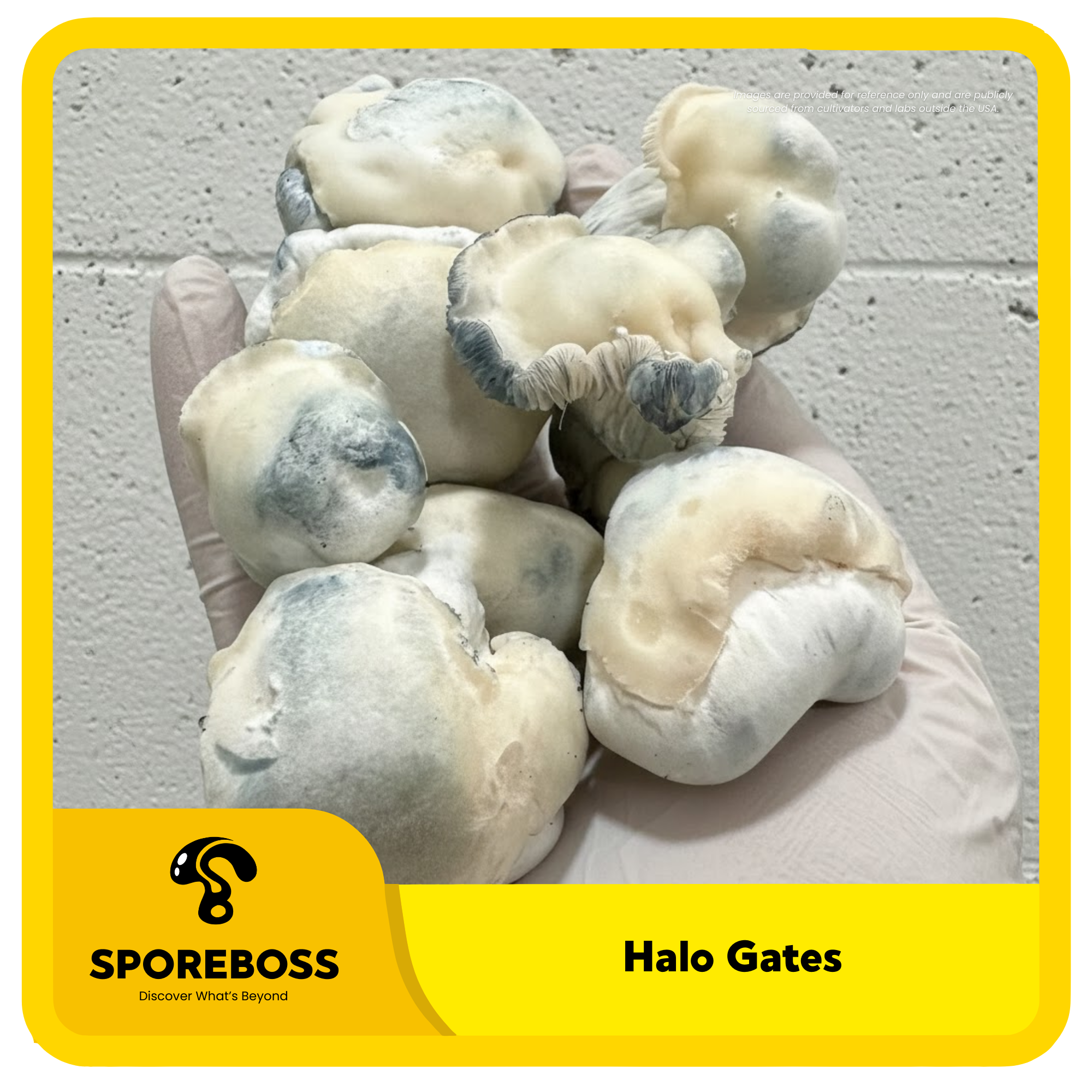 Halo Gates cubensis is a hybrid created by James Cruz by crossing Emerald Gates with TAT Black Cap. According to James, this is the strongest of the “Gates” genetic family. Halo Gates has bumpy white stipes and cream colored dome shaped caps. The top of the caps turns black as the fruits mature.