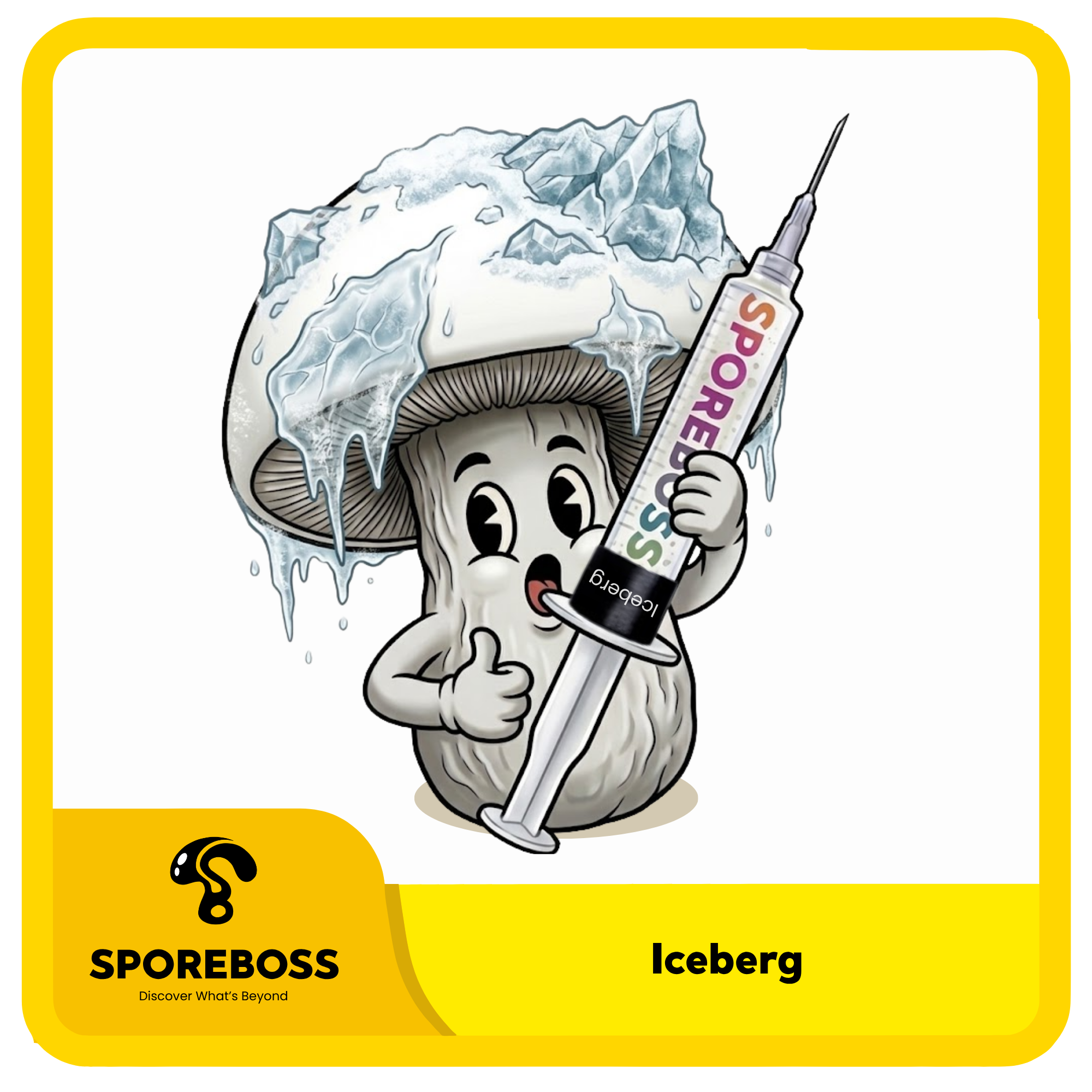 It typically produces smooth, light-capped fruiting bodies with thick-walled spore development and a dense, compact structure. Iceberg stands out for its frosted appearance and well-defined albino traits, making it a distinctive addition to modern isolated lines.