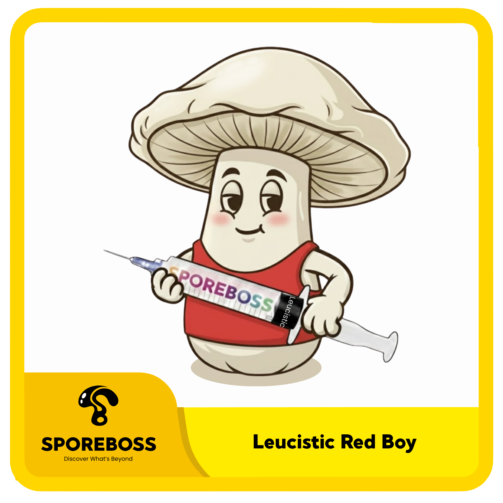 Leucistic Red Boy is a pale mutation of the Red Boy strain, which was originally known for reddish-tinted caps. The leucistic trait reduces pigmentation while keeping the original structure.
