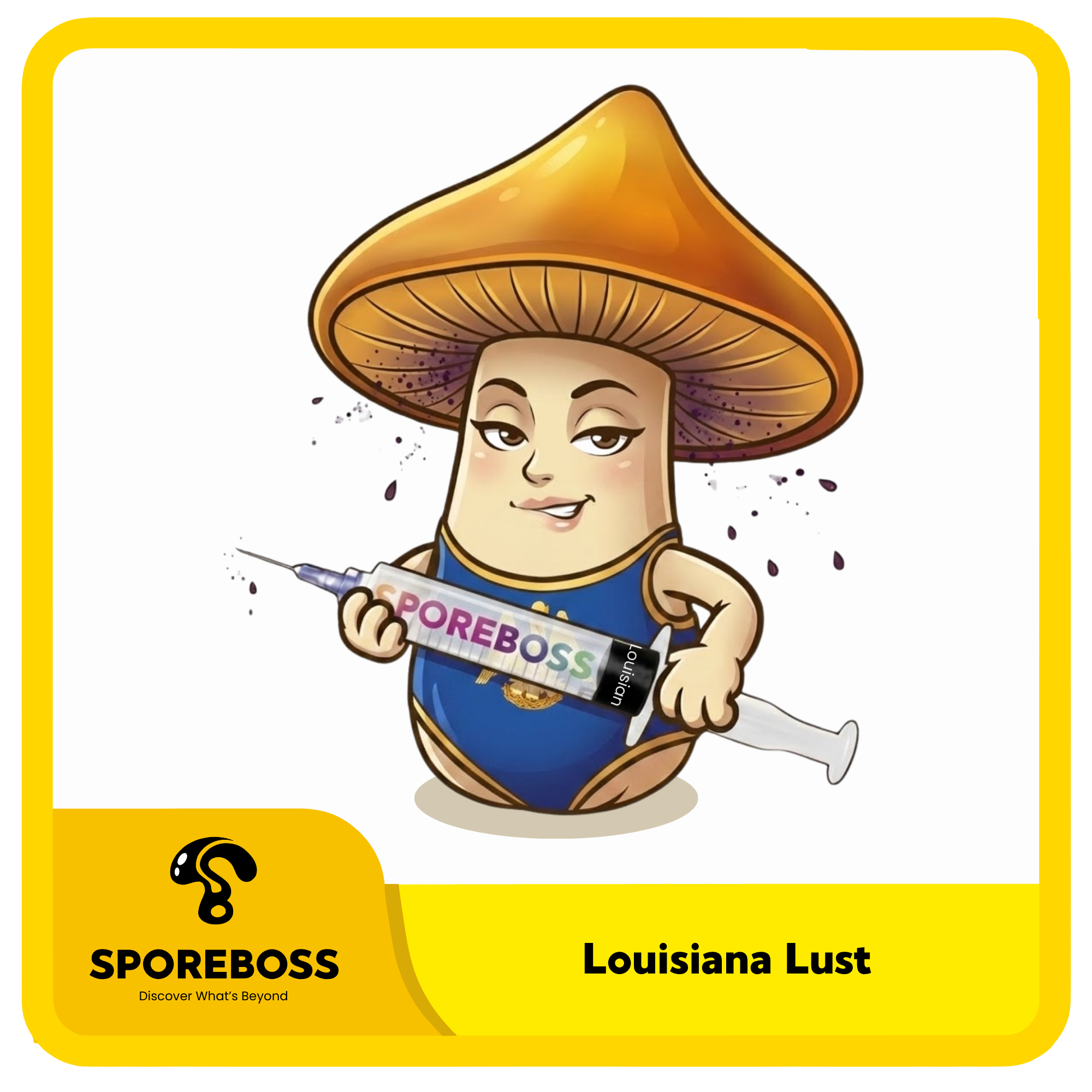 It produces sharp, pointy golden caps with sturdy stems and heavy dark spore drops. Extremely aggressive and fast from spawn to harvest, Louisiana Lust is known for quick, full flushes and strong overall vigor.