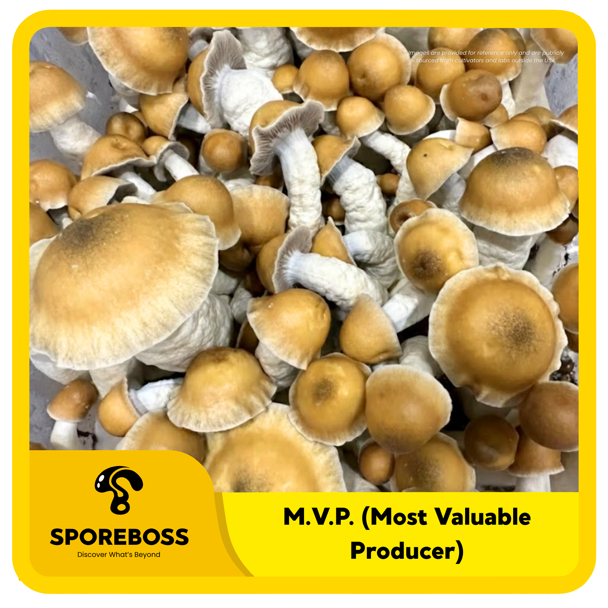 Most Valuable Producer (MVP) is one of the isolations which resulted from Jik Fibs’ “TAM Project”, a hybridization of Melmac and True Albino Teacher which created several phenotypes in the TAT family. MVP has copper-brown dome shape cap, with wavy cap edges. MVP tends to produce full flushes of long stipe fruits.
