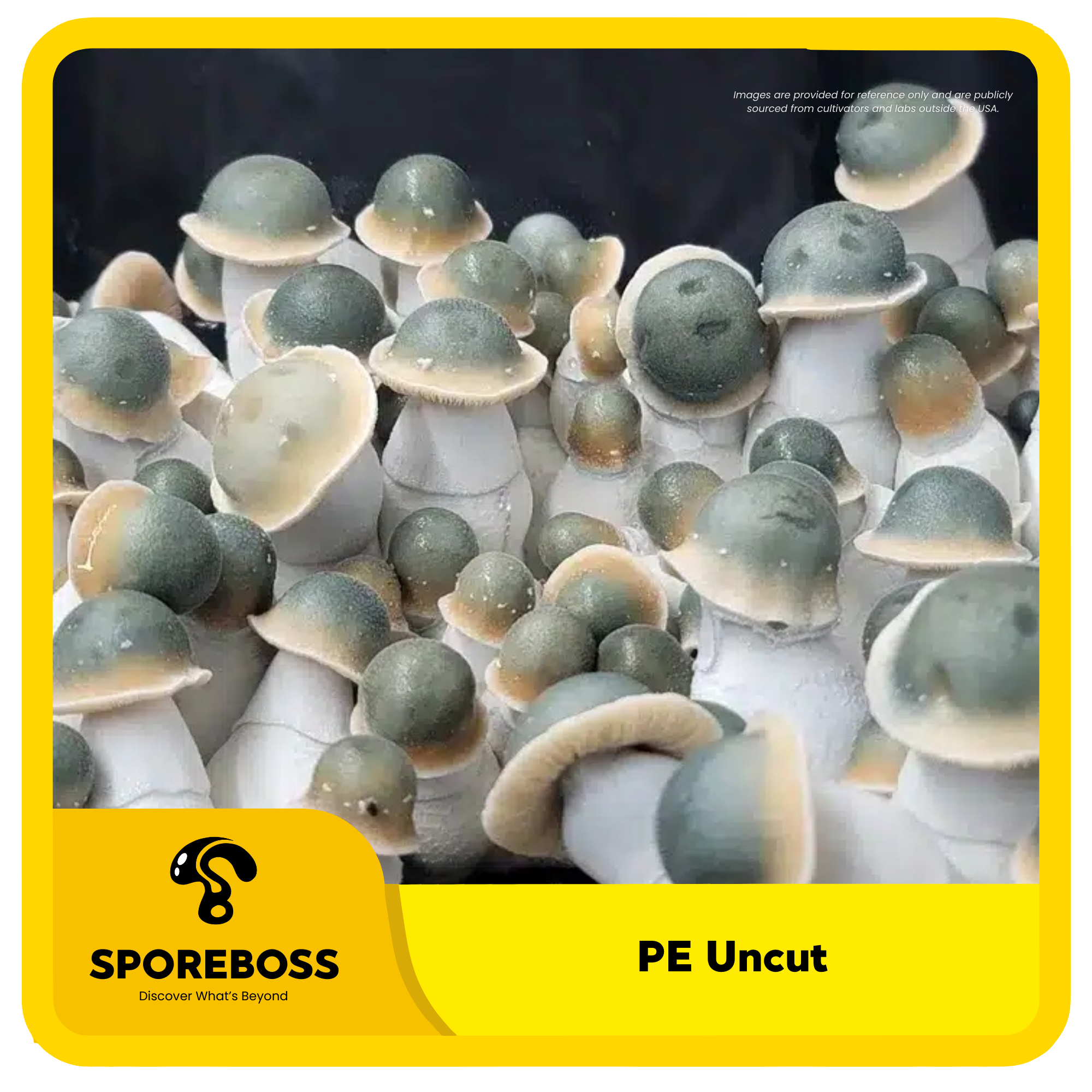 PE Uncut is a distinctive mutation within the Penis Envy family, recognized for its unusually thick caps that remain partially closed or “uncut,” giving the variety its name. This unique structural trait—paired with the dense stems and chunky morphology typical of PE genetics—makes PE Uncut visually striking and easy to distinguish from other PE lines. Its rarity and bold appearance have earned it a strong presence in modern mycology collections.