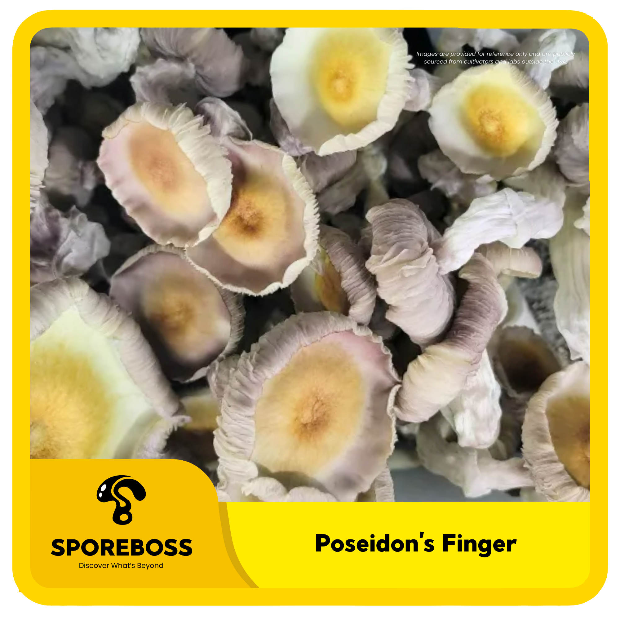 Poseidon’s Finger is a hybrid cubensis isolated by MICoFroots and is a cross of Tidal Wave and Albino Penis Envy. It is known for producing full flushes and very long stipe fruits. The caps are cream colored with yellow at the center. The cap edges turn up as the fruits grow, and eject only a light dusting of spores.