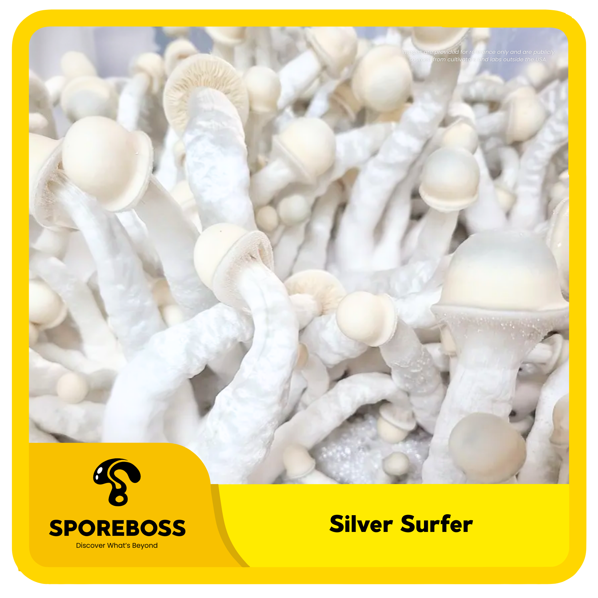 Silver Surfer is a hybrid cubensis isolation that comes from a cross between TAT and Melmak. Crossed by Dave Wombat. This cross was a product of the “TAM Project” along with Gandalf and Pearly Gates. The have long, twisty white stipes and caps that look like silver bullets.
